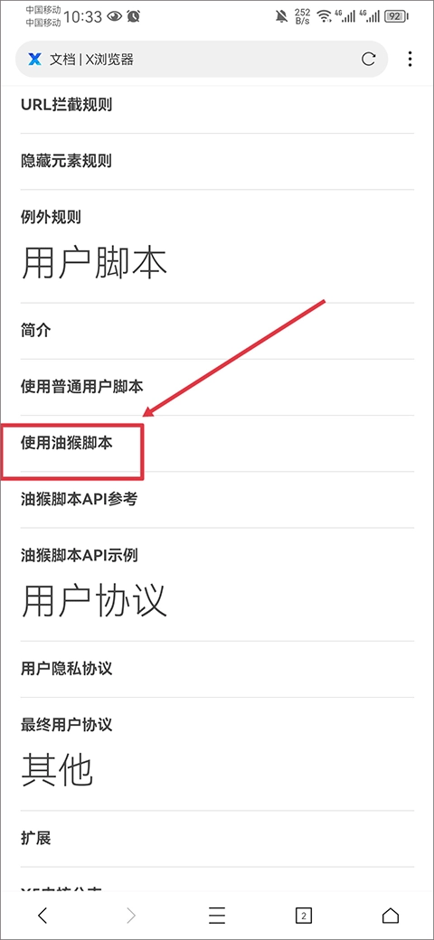 進(jìn)入后設(shè)置界面后,點(diǎn)擊用戶腳本