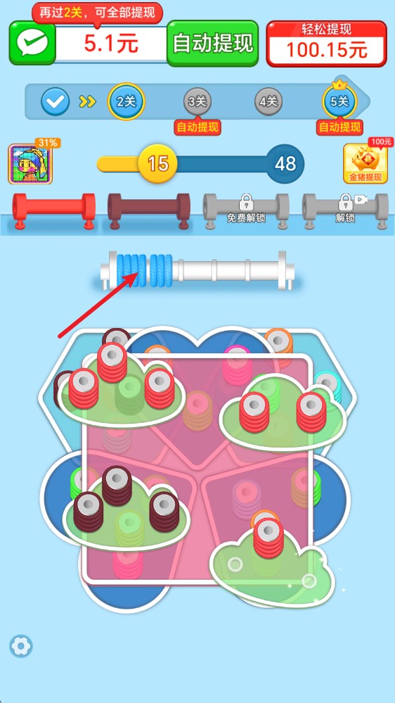 我要拆毛線(xiàn)紅包游戲是排序闖關(guān)的解毛線(xiàn)小游戲,很多小游戲在玩法上都有些類(lèi)似,所以玩法上不必多說(shuō)。最重要的是可以嘗試通關(guān)之后獲取金幣,玩游戲的同時(shí)去賺取各種紅包,超多福利豐富關(guān)卡道具等都可以進(jìn)入到你的背包之中。