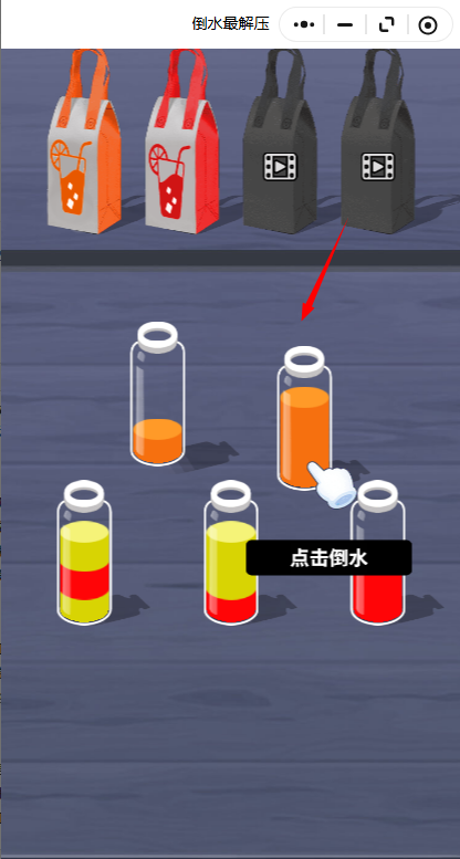 倒水最解壓賺錢小游戲去完成一些有挑戰(zhàn)性的任務(wù),計(jì)算排序不能有誤差,輕松排序把水倒到相應(yīng)的瓶子里,點(diǎn)擊拖動即可非常具有挑戰(zhàn)性意義。