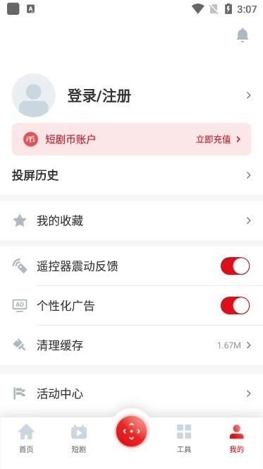 4、在我的版塊則可以查看收藏的內(nèi)容以及投屏歷史。