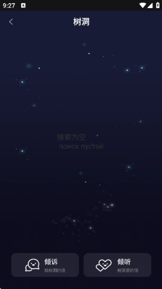 進(jìn)入軟件首頁后,界面顯示如圖;接著點(diǎn)擊進(jìn)入樹洞板塊,即可開啟聊天互動(dòng)。