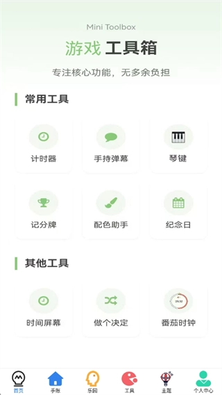 首頁展示了豐富多樣的工具類型,涵蓋常用工具、其他工具以及游戲工具等,用戶可免費選擇使用。