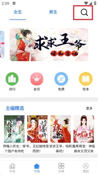 進入到平臺書城界面,點擊右上方的放大鏡。