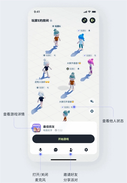 超好玩的電子轟趴,讓你可以和朋友們一起逃離日常,享受瘋玩的樂(lè)趣!你可以在朋友廣場(chǎng)添加好友,和他們一起熱舞,組隊(duì)進(jìn)入游戲,享受專(zhuān)屬于你們的空間。