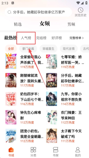可以點(diǎn)擊進(jìn)入“人氣榜”板塊,查看當(dāng)下的熱門作品,就能便捷地發(fā)現(xiàn)那些備受大眾喜愛的書籍。