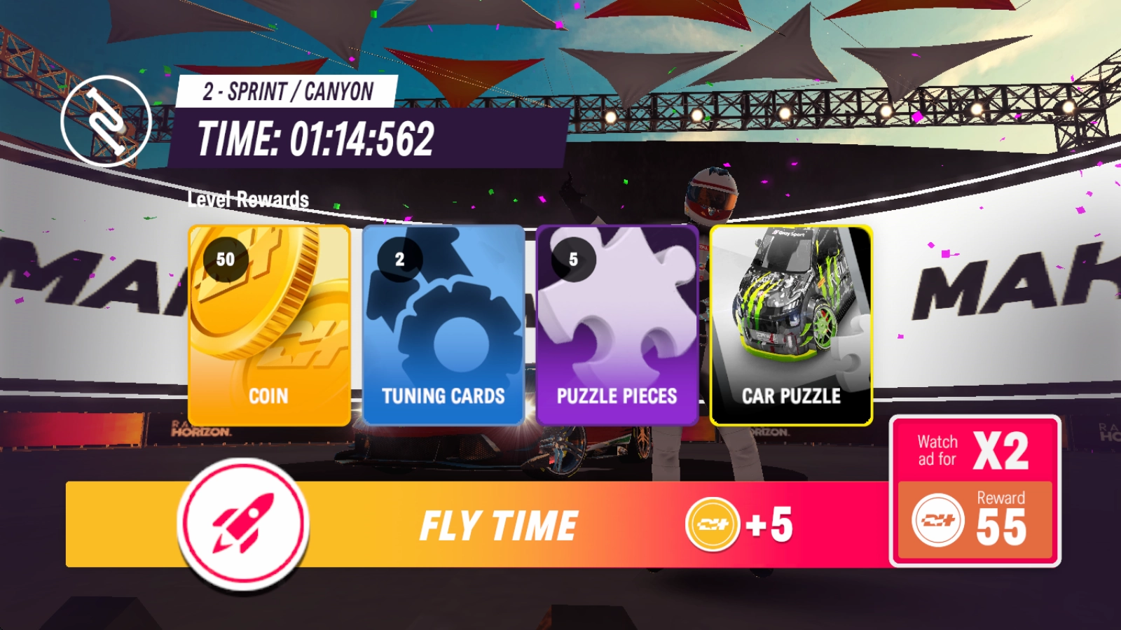 沖過終點后就會結(jié)束比賽,并根據(jù)名次獲得獎勵。