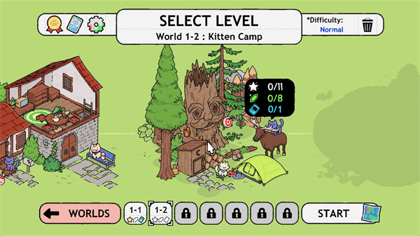 1、進入游戲后滑動屏幕可以選擇不同的關(guān)卡,選好關(guān)卡后點擊start按鈕開始游玩。