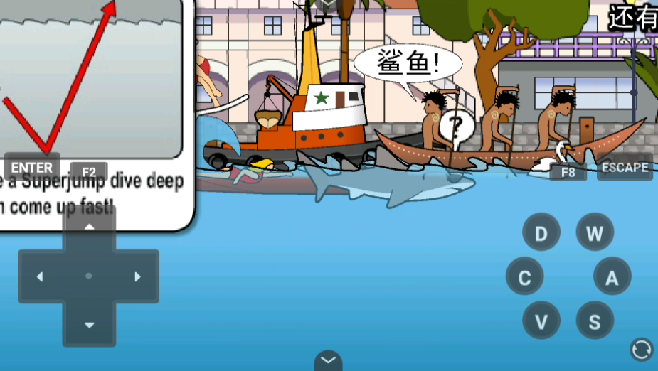 使用虛擬搖桿或傾斜手機(jī)來(lái)控制鯊魚在水下游動(dòng)。
