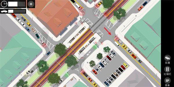 玩家通過點擊或拖動操作,控制路口各個方向的信號燈切換,并可以臨時設置潮汐車道或優(yōu)先放行特定車輛。