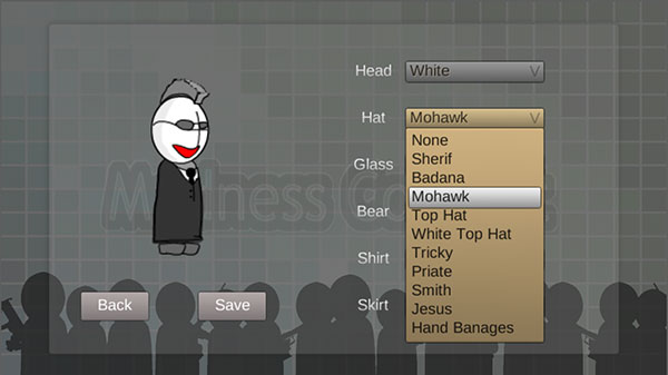 2、選擇右側(cè)的head、hat、glass、shirt等外觀選項,自定義發(fā)型、眼鏡、膚色以及衣服,完成后可以點擊Save保存;
