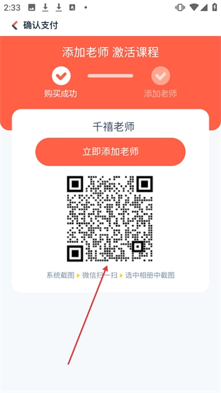 領(lǐng)取成功后,您可以掃描二維碼添加千禧老師,從而激活課程。