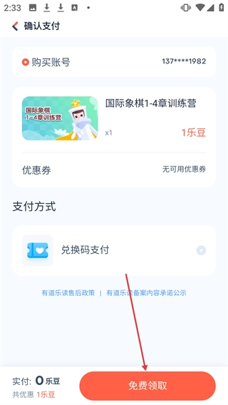 在確認(rèn)支付頁面,點(diǎn)擊【免費(fèi)領(lǐng)取】。