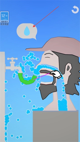 按照提示操作管道,調(diào)整管道的連接情況,讓水龍頭流出的水經(jīng)由管道輸送,滿足角色的需求。