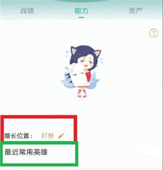 再移到上方寫著“能力”的地方,這里能看到最近常用的英雄,還有擅長位置之類的資料。
