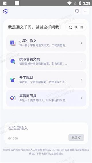 進入主頁,就可以在輸入框中輸入內(nèi)容進行提問。