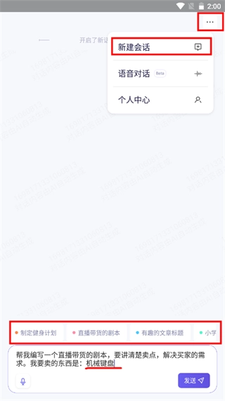 點擊右上角三個點,可以進行"新建對話"。