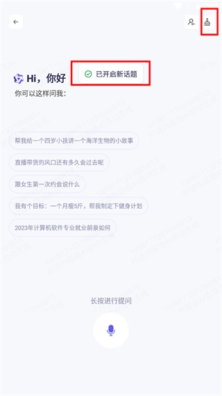然后點擊右上角紅框中的圖標(biāo)進行開啟新的話題。