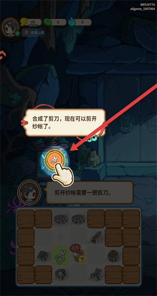 點(diǎn)擊使用合成好的剪刀,對(duì)目標(biāo)對(duì)象執(zhí)行操作,解救蝴蝶。