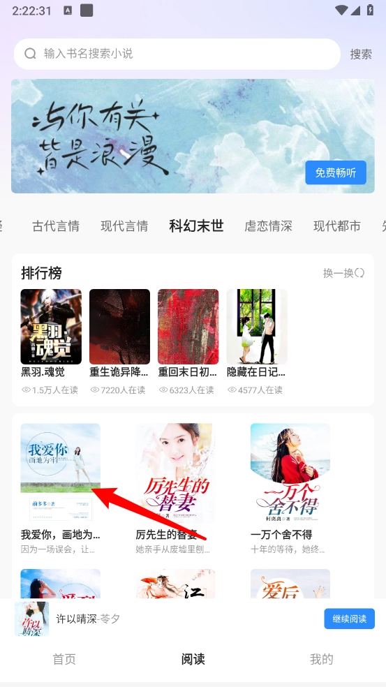打開軟件,在閱讀界面選擇所需加入書架的小說。