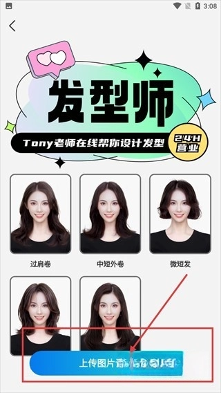 進入【發(fā)型師】頁面后,你可以瀏覽多種發(fā)型樣式,其中包括【過肩卷】和【中短外卷】,若想繼續(xù)操作,點擊【上傳圖片試發(fā)型】按鈕即可。