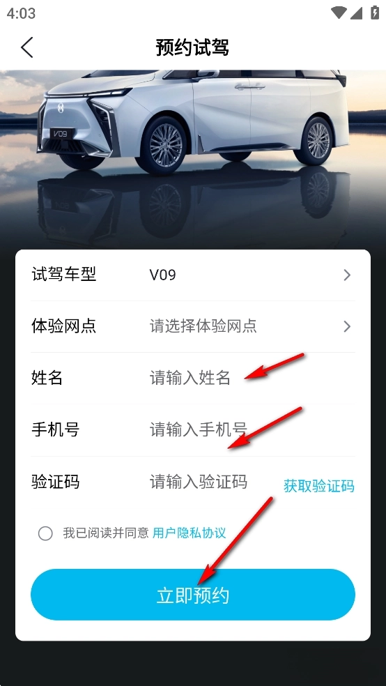 輸入姓名、手機(jī)號(hào)和驗(yàn)證碼后點(diǎn)擊【立即預(yù)約】即可