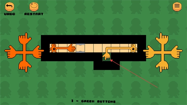 你可以通過左右兩側(cè)不同顏色的方向手掌,來操控對應(yīng)顏色的小人手掌延伸的方向。