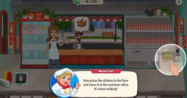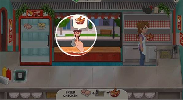 點(diǎn)擊制作好的炸雞,然后再點(diǎn)擊對應(yīng)需求的顧客,即可完成交付。