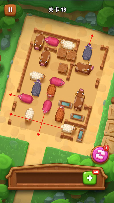 這是一款融合了農(nóng)場建設(shè)與動物交通解謎的創(chuàng)新游戲,玩家需要為農(nóng)場中的動物規(guī)劃并鋪設(shè)合理的通行路線。