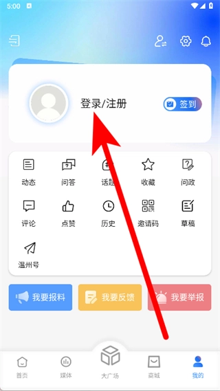 進(jìn)入我的頁面,點(diǎn)擊登錄注冊。