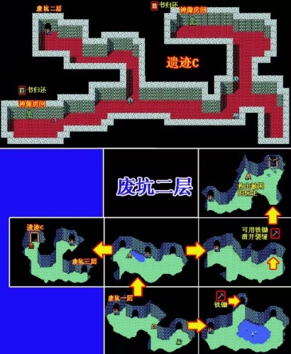 這里有三層,每一層都存在遺跡。遺跡中的神像房間里寄宿著六位神官的靈魂,與他們對話,并將在一代中獲得的六本伊蘇之書歸還給他們。之后他們會幫助亞特魯恢復HP。