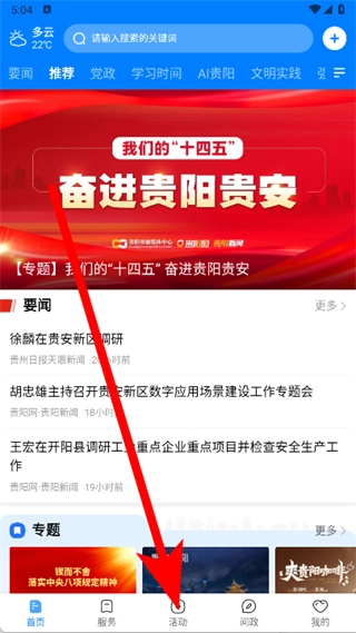 打開貴陽(yáng)新聞,點(diǎn)擊底部活動(dòng)。