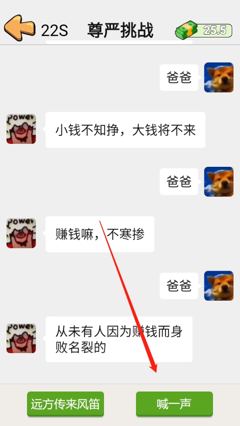 下面這張圖就是尊嚴(yán)挑戰(zhàn)的詳細界面,我們能在一分鐘內(nèi)挑戰(zhàn)自己的尊嚴(yán),每叫一次可以得到1鈔票的獎勵,一番操作之后小編的尊嚴(yán)已經(jīng)沒剩下多少了!