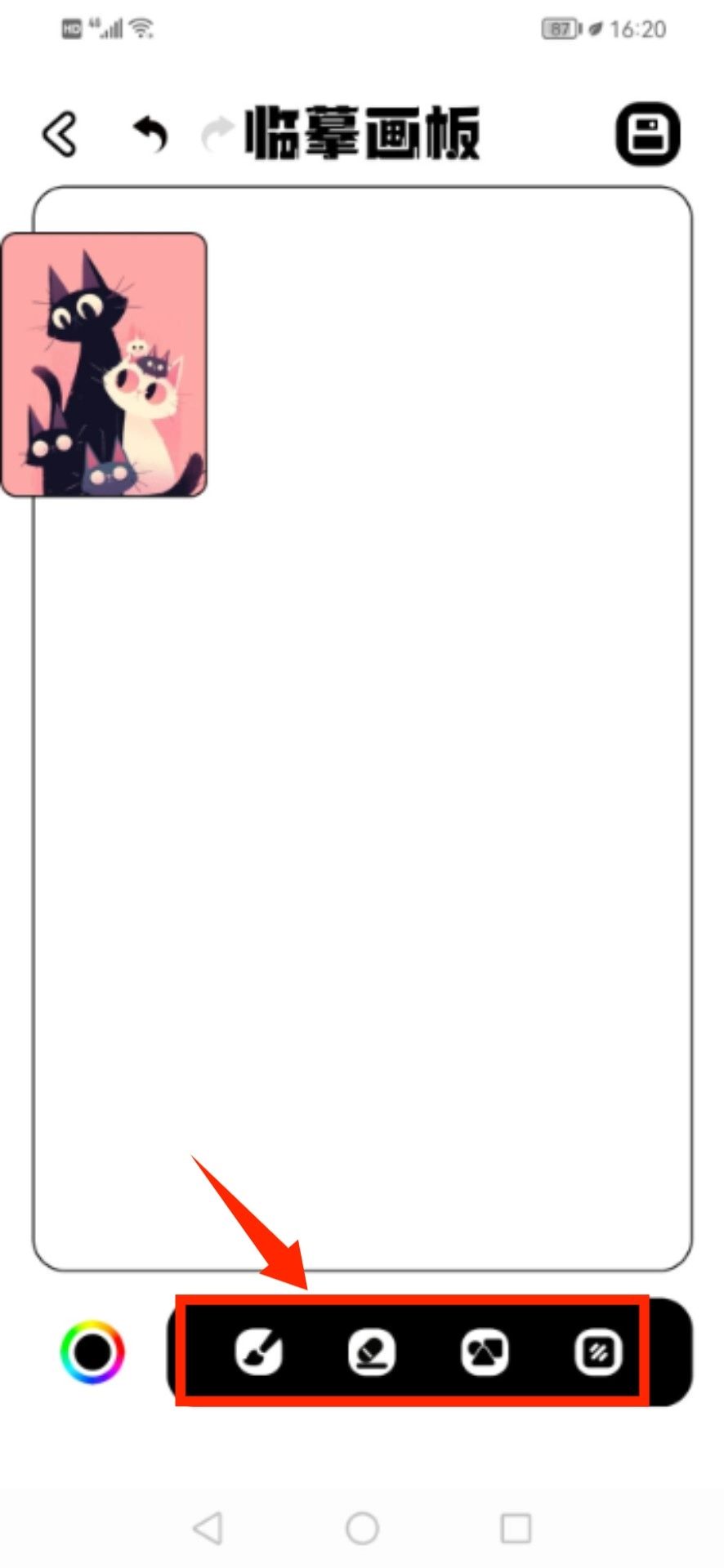 選定模板后進(jìn)入臨摹界面,借助底部配備的繪畫工具著手創(chuàng)作。