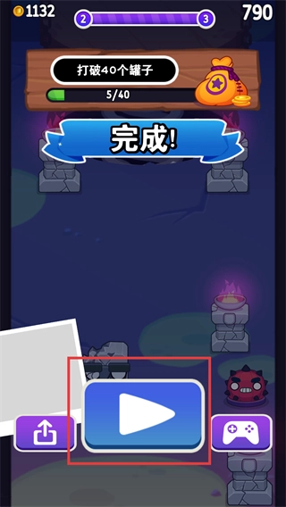 關卡結束后,點擊藍色播放按鈕,重新進入挑戰(zhàn)。