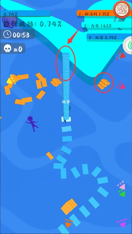 操控小人移動以收集相同顏色的方塊,通過合理規(guī)劃移動路線來提升收集的效率。請注意躲避障礙物,并避免受到其他玩家的干擾。