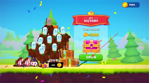 戰(zhàn)斗勝利后會(huì)獲得金幣獎(jiǎng)勵(lì),點(diǎn)擊界面上的OPEN按鈕打開寶箱,就能領(lǐng)取這次勝利對(duì)應(yīng)的額外獎(jiǎng)勵(lì)了。