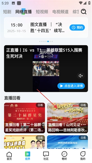 在網(wǎng)絡(luò)直播頁面,選擇你感興趣的直播回看內(nèi)容并點(diǎn)擊,即可進(jìn)入該直播的詳情頁面。