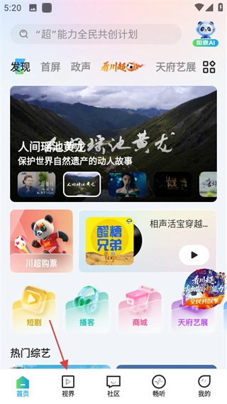 進(jìn)入軟件首頁,點(diǎn)擊底部視界,進(jìn)入視界頁面。