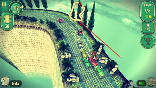 按下Gas鍵來為賽車提速,駕駛它在賽道上飛馳,同時全力追趕前方的車輛。