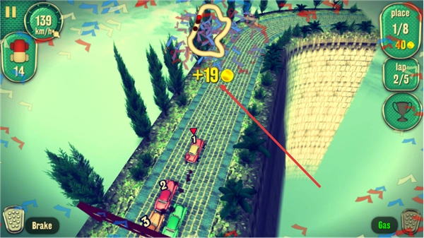 完成賽道圈數(shù)從1/5推進到2/5,同時收集到19枚金幣,以此推動比賽進程。