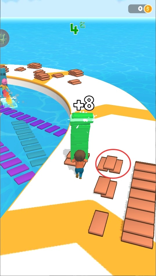 核心玩法為收集場(chǎng)景內(nèi)的木塊道具,在恰當(dāng)位置搭建浮橋,借助創(chuàng)造捷徑來超越對(duì)手,以率先到達(dá)終點(diǎn)的方式贏得勝利。