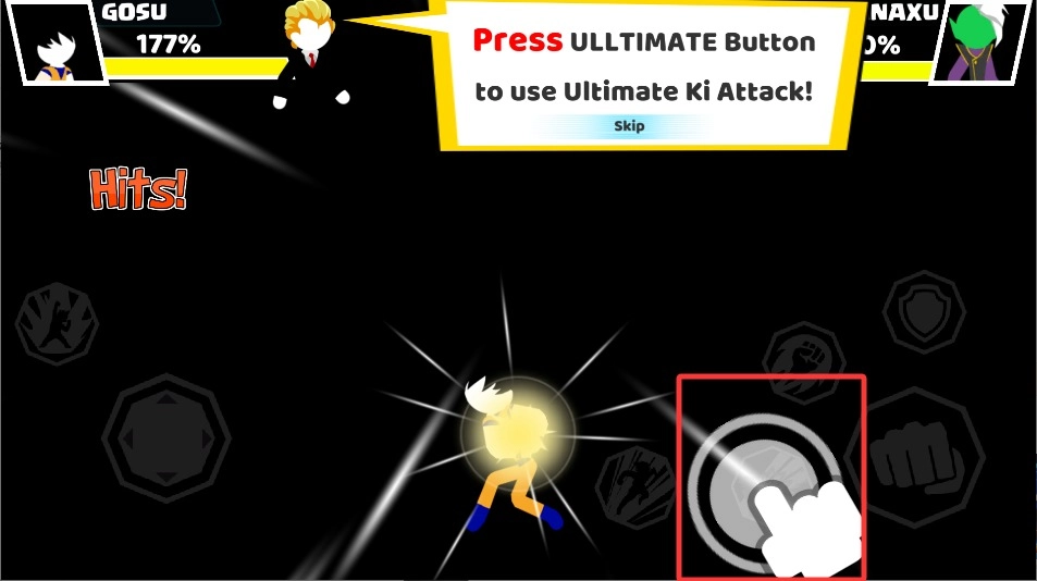 長按能量鍵可以為悟空積蓄力量,當(dāng)能量條填滿時(shí)他會(huì)周身閃耀金光,此時(shí)就能釋放強(qiáng)力招式了。
