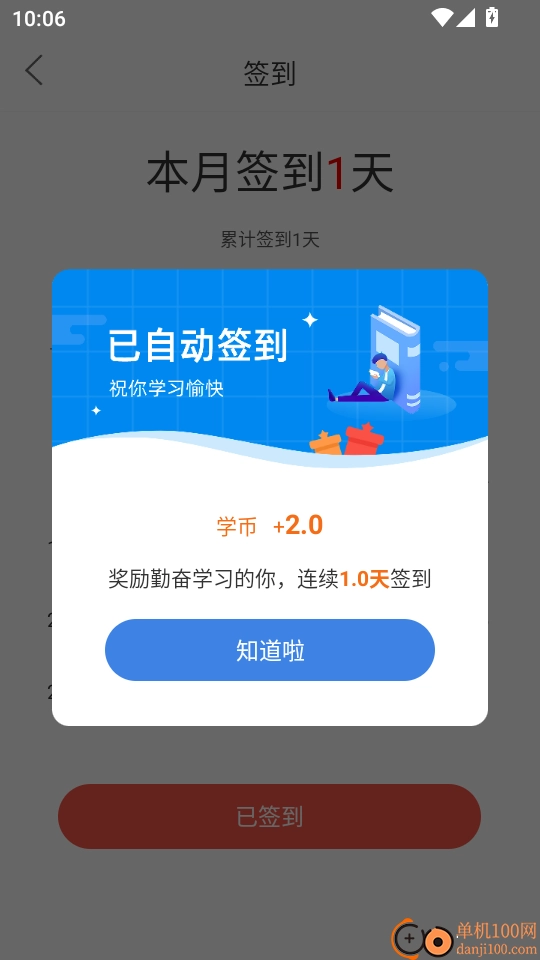最后會(huì)彈出“已自動(dòng)簽到”的提示窗口,點(diǎn)擊“知道啦”按鈕后就完成了簽到操作。