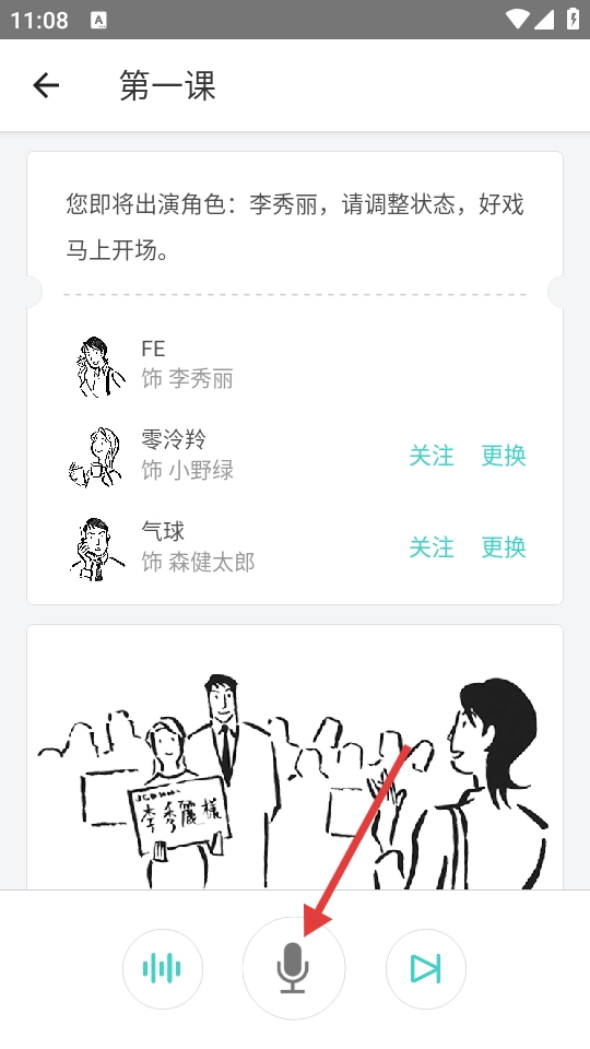 在角色出演準備界面,點擊麥克風圖標,即可開啟角色配音出演流程。
