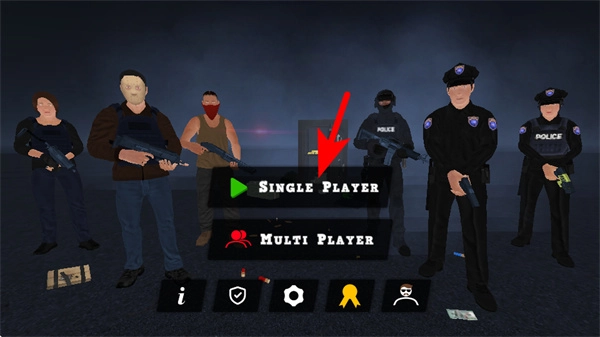 進(jìn)入游戲界面后,找到紅色箭頭所指的SINGLE PLAYER按鈕并點(diǎn)擊,選擇單人模式進(jìn)入游戲,這一步是關(guān)鍵操作。