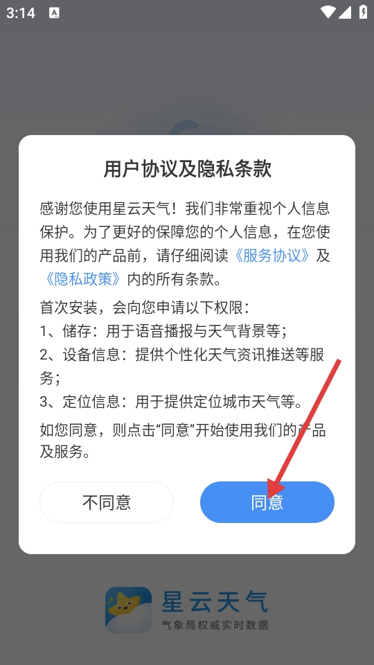 點(diǎn)擊【同意】按鈕,即表示您同意用戶協(xié)議與隱私條款,隨后將進(jìn)入主界面。