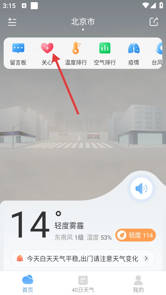 在主界面上,點(diǎn)擊【關(guān)心】選項(xiàng),就能進(jìn)入“我的關(guān)心”頁面。