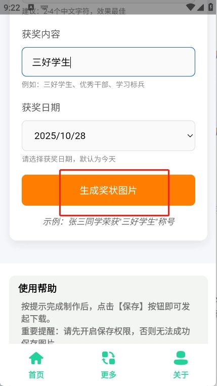 填寫完成之后點擊“生成獎狀圖片”。