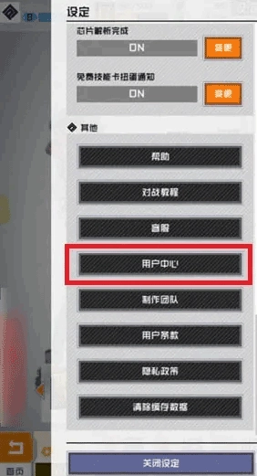 點(diǎn)擊主界面右上角的【設(shè)定】按鈕,把頁(yè)面滑動(dòng)至最底部,然后選擇【用戶中心】選項(xiàng)。