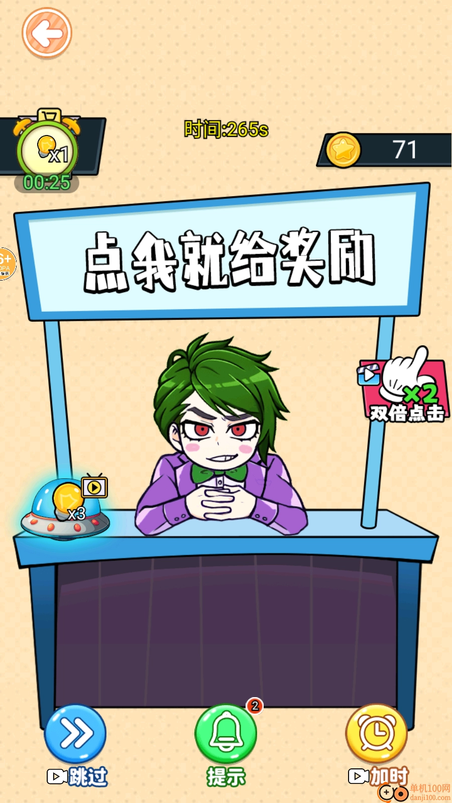 游戲里會隨機出現(xiàn)一些加倍道具,用手指點擊一下就能獲得三倍點擊的效果